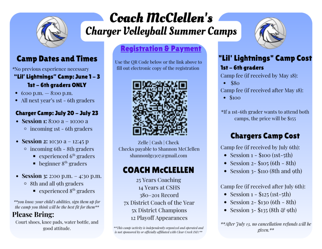 - It is required you attend all sessions of tryouts, unless otherwise approved by Coach McClellen.